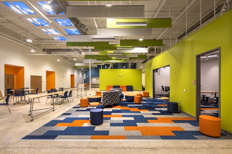The innovative design by Oakley Collier Architects, PA will be used to support up to 200 students as well as providing space for programs & training for MCC students, local industries, or government.